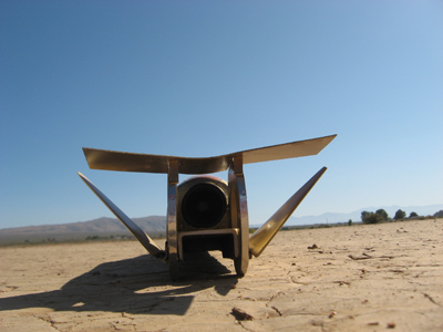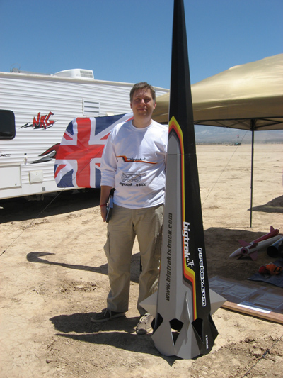 Early this month I was also invited to a big LDRS (Large and Dangerous Rocket Society) and Tripoli rocket meet out on a dry lake near Lucerne California. They have them periodically there and people bring home built flight rockets to test and fly from all over the world. Here is a photo of a Brit with a conical design with a very novel tail concept. I thought it was clever and wanted to pass it on. Photo I don’t know how well it flew but it sure looked neat.