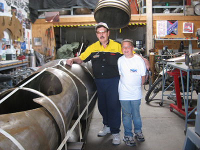 Later Ky and his son Buddy came over to my shop to look at how Sonic Wind LSRV is progressing. He liked the new design and told me how back when he was designing his unlimited LSR rocket car he simply built what he thought looked right. It is funny that most aerodynamicists come up with almost the exact same design if you were to ask them to conceptualize a rocket powered LSR car. Here is a photo of Ky and Buddy standing by my semi assembled Sonic Wind LSRV rocket car.