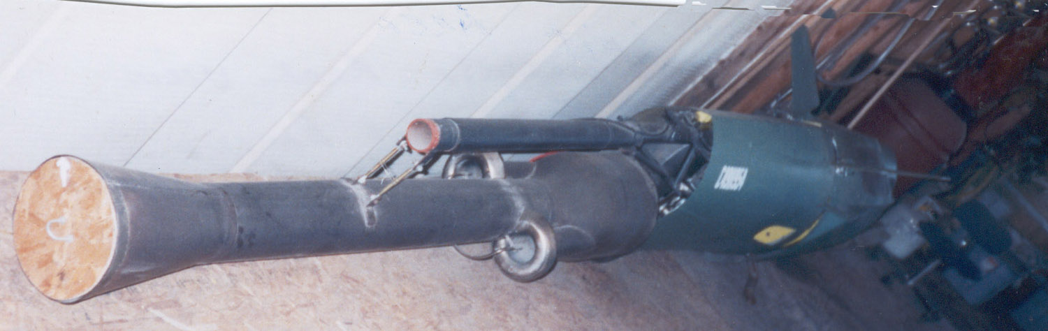 the rear and installed a Propane fueled, valveless pulse jet engine of 90 pounds