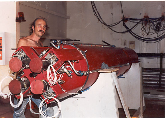Ken Mason working on battery of 4 - LR 101 rocket engines -early 1990's